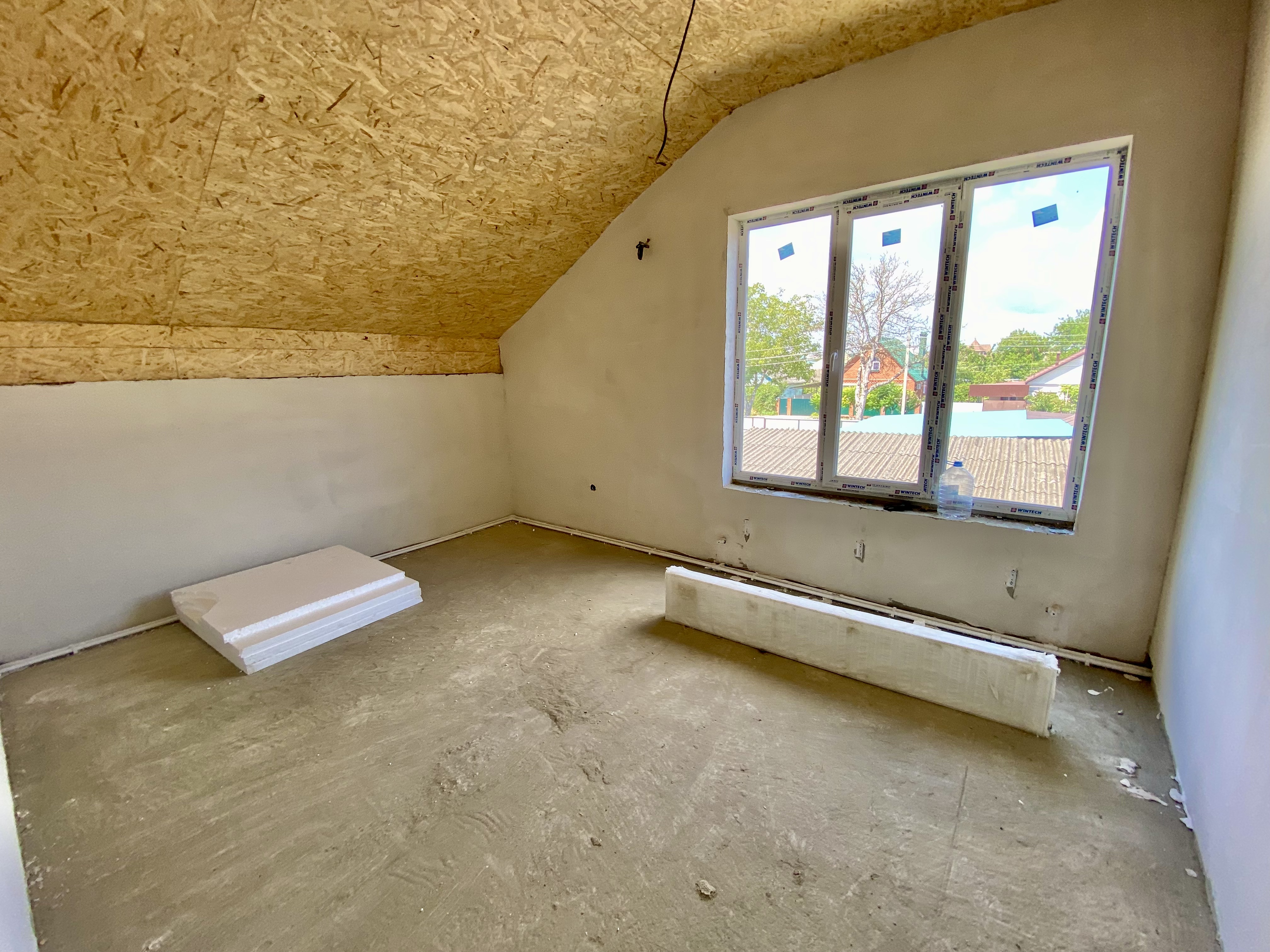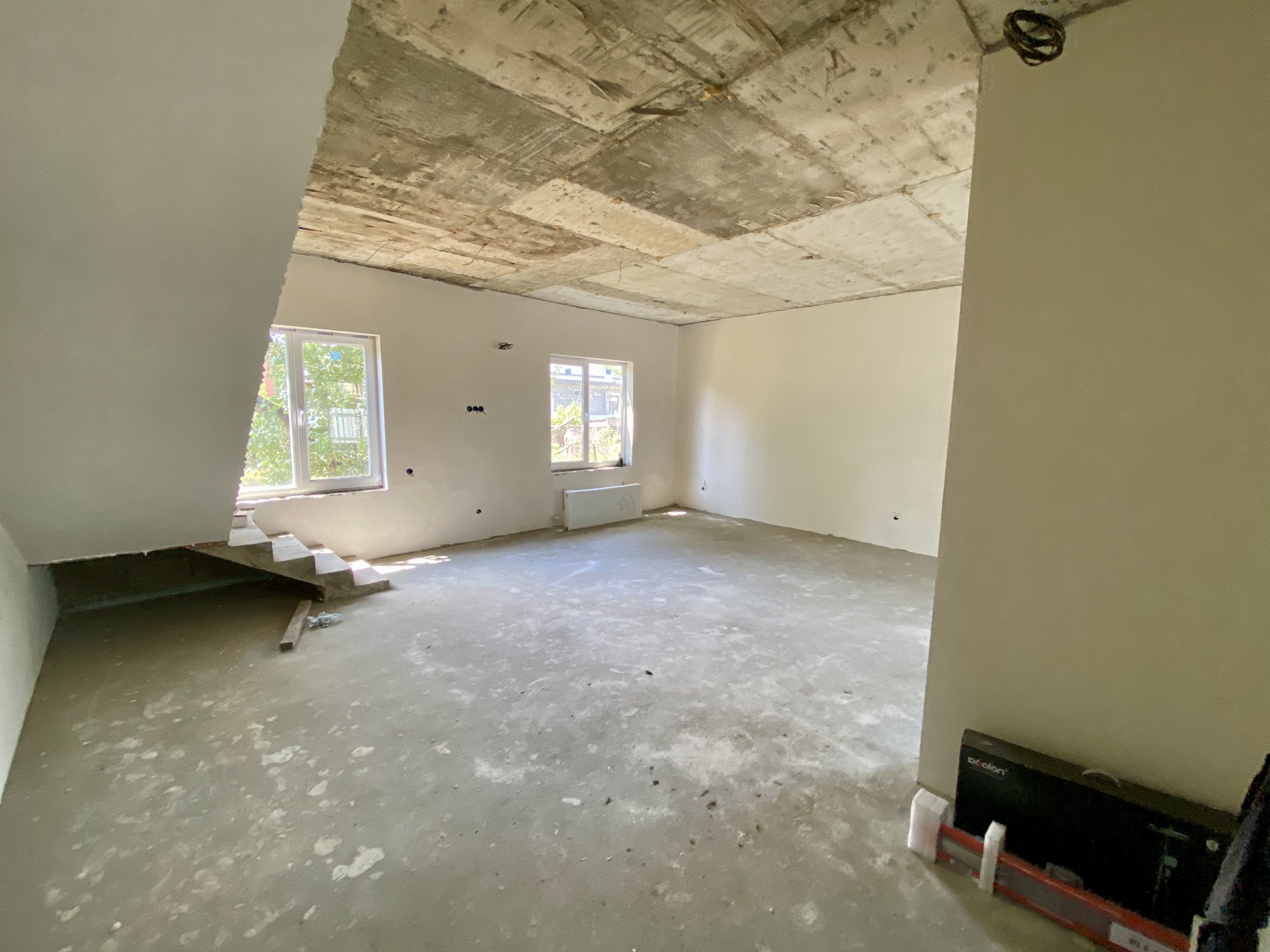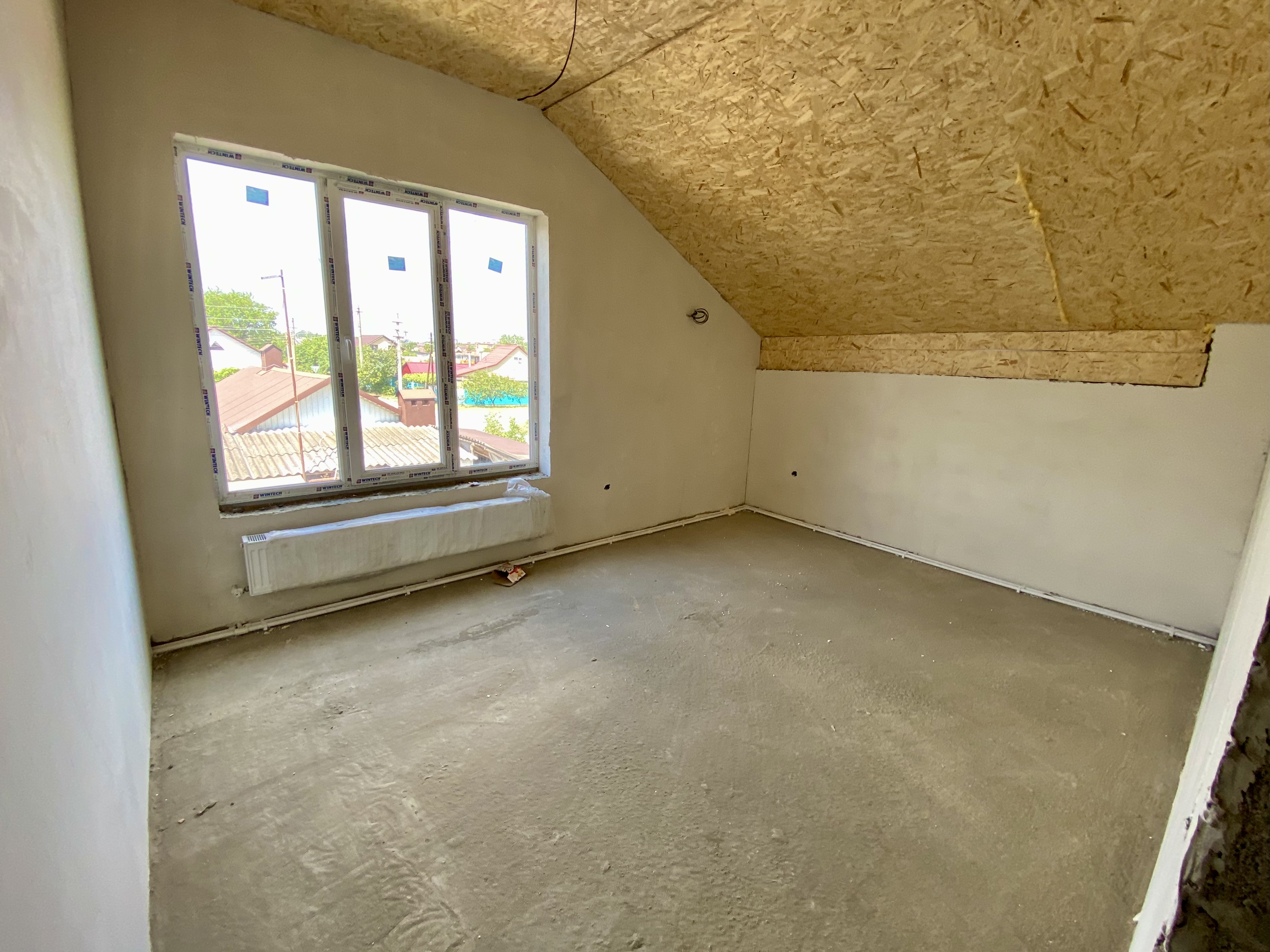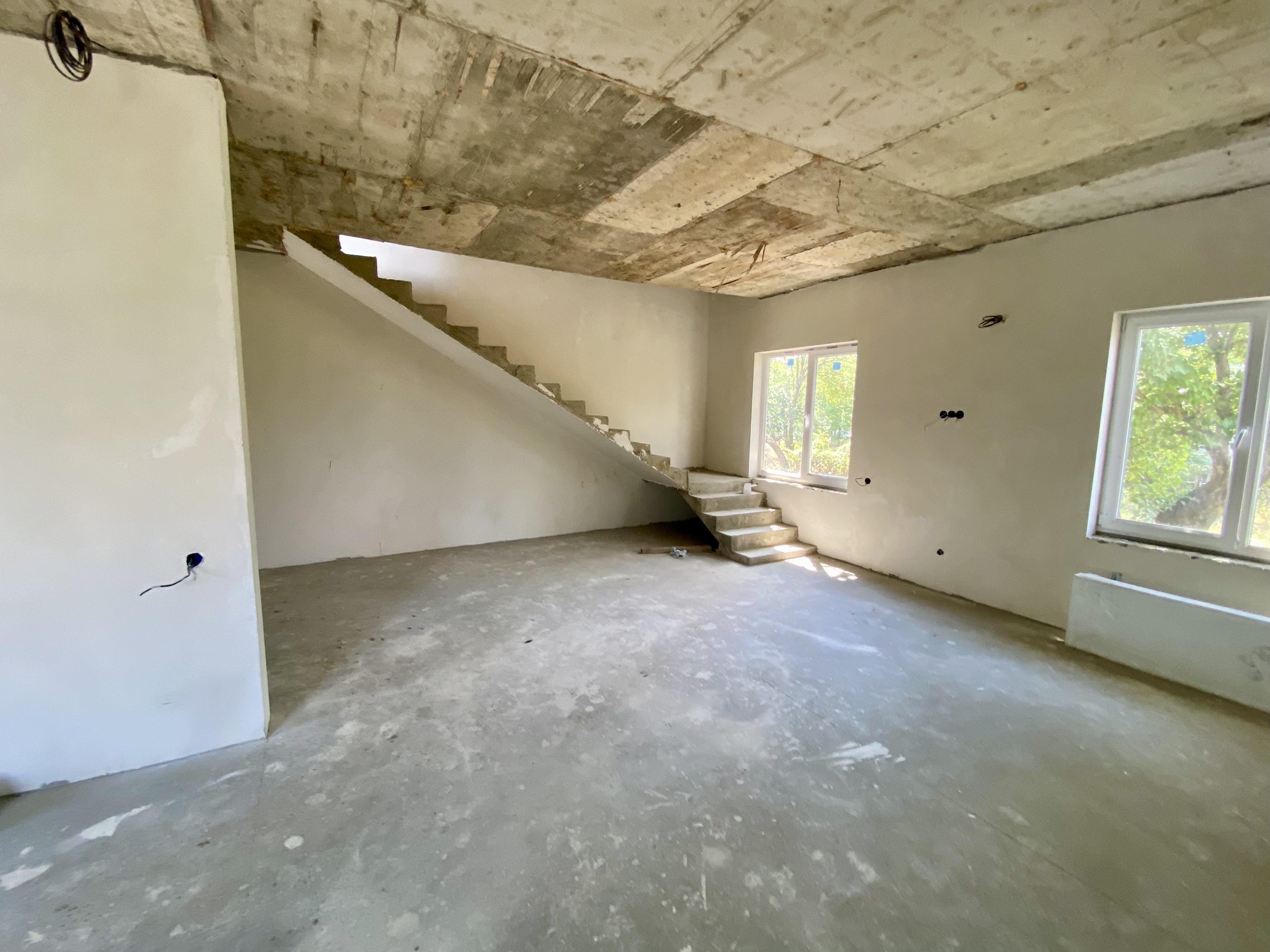 Продается коттедж. Два этажа, на первом этаже большая кухня-гостиная, санузел, на втором две жилые комнаты и санузел. Сделан теплый пол и стяжка, разведена электрика, отопление, установлены радиаторы и двухконтурный котел.
