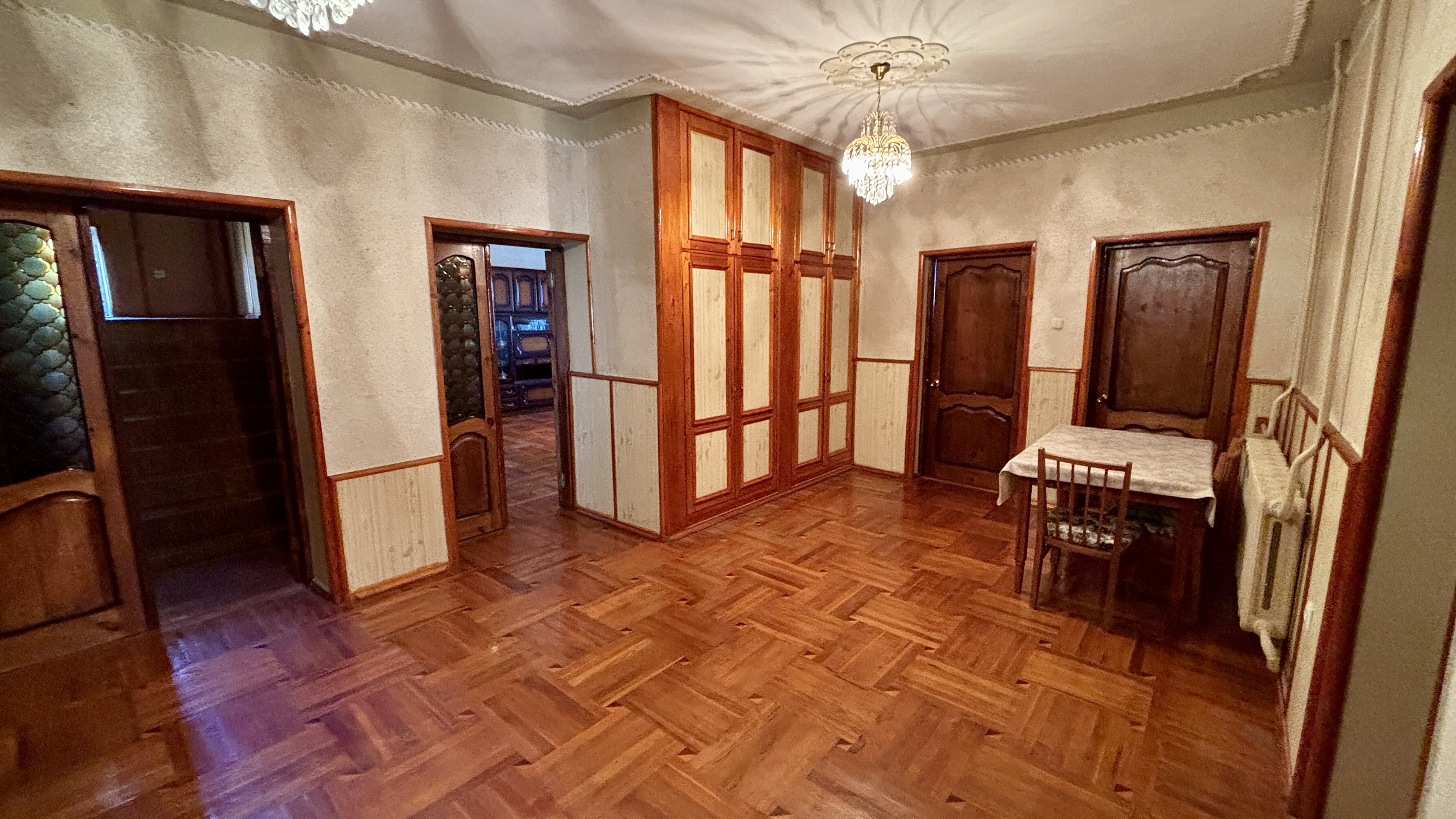 - Планировка: 8 жилых комнат, 2 кухни, 2 ванные комнаты, несколько кладовых помещений.