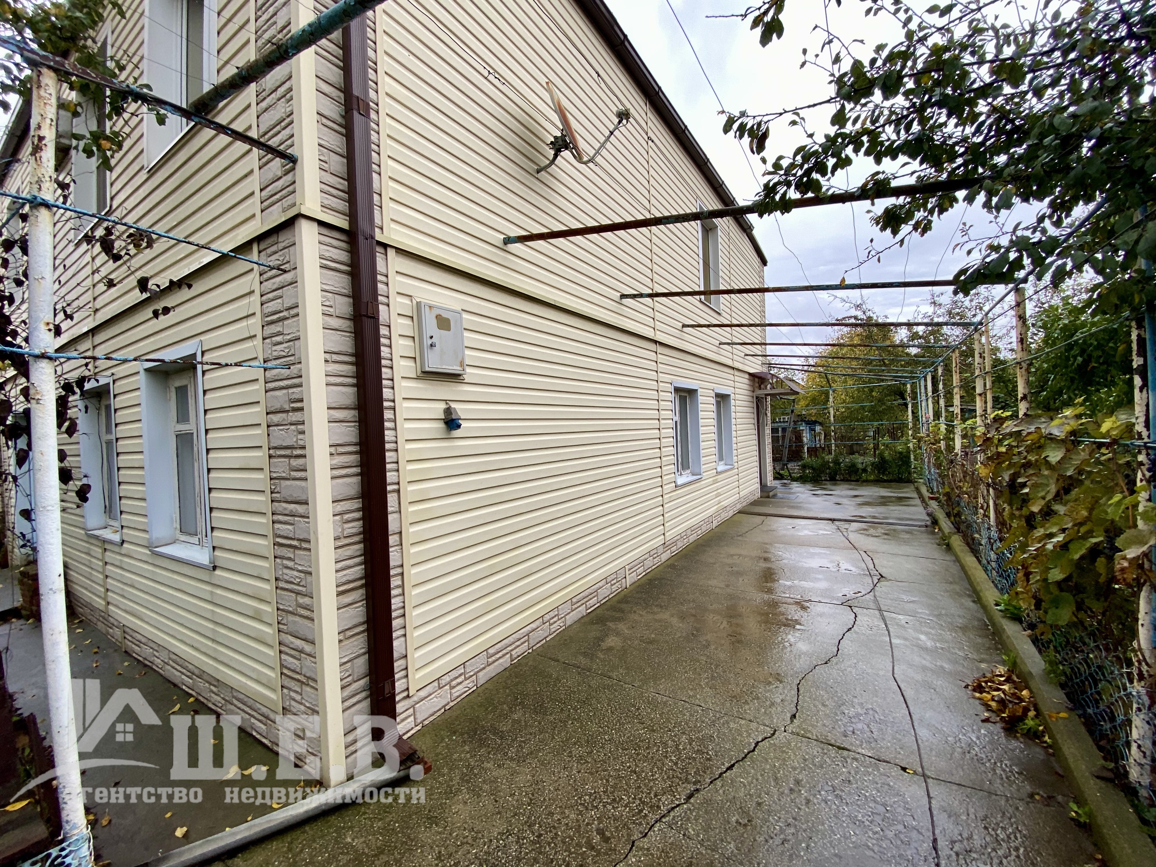 - Участок: Полностью благоустроен. Прямоугольная форма участка 4 сотки позволяет легко зонировать пространство. Забетонированный двор — это экономия вашего времени и средств на благоустройство. Растут виноград и плодовые деревья. Много места для собственного сада или огорода.